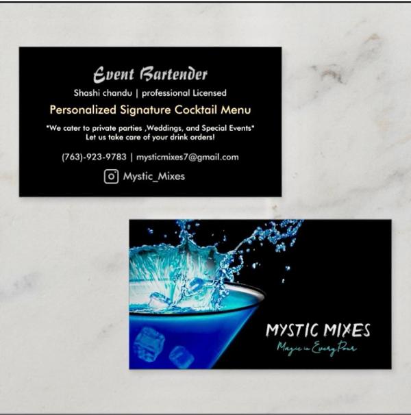 • Custom Cocktails: I'll work with you to create a unique drink menu tailored to your event's theme and preferences.